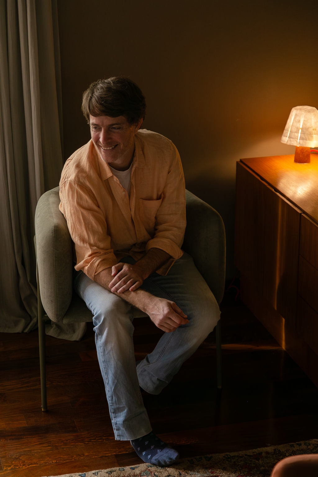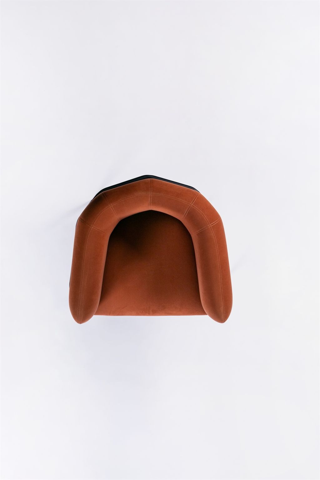The seat is generous, soft to the touch, and conveys an enveloping warmth. Double-stitched seams trace the silhouette’s folds like lines of tension, adding visual structure and definition to its faceted surfaces.